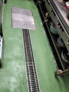 以前より床面の劣化が著しく、水はけが悪くなっており、水分や油分が残ったままとなりスリップ・転倒のリスクとなることが問題となっていました。また、水はけの悪さは劣化の加速や衛生面での問題ともなりかねない問題でした。